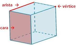 Hemos aprendido que un poliedro es un cuerpo geométrico cuyas caras son polígonos. Estas son sus partes: