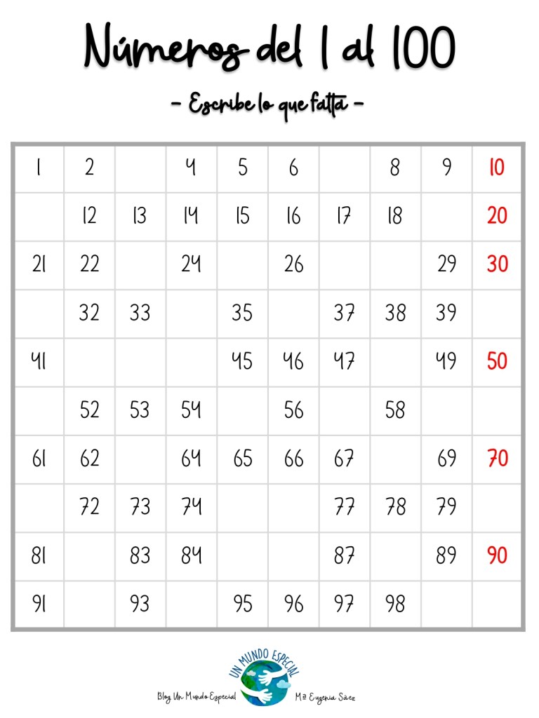 Una vez visto en clase los números hasta el 100, vamos a seguir practicando.